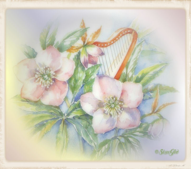 - Harp and flowers